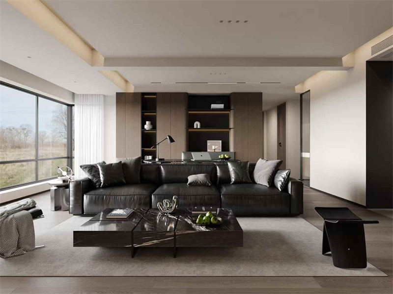 通过深棕、黑、米白等色调的搭配,营造出沉稳大气且富有品质感的氛围。从家具的质感选择到空间的整体布局,都彰显出简约而精致的格调,让空间通透敞亮。