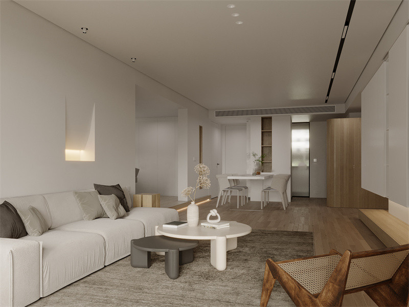 以极简风格为核心,用白色、浅灰等柔和色调打底,融合木质、金属材质,营造出清新雅致氛围,借由独特家具、细节装饰,为各区域赋予舒适与艺术感。