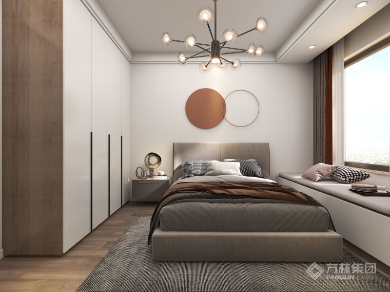 没有繁琐的造型,白色的乳胶漆墙体,配上灰色的床柜
