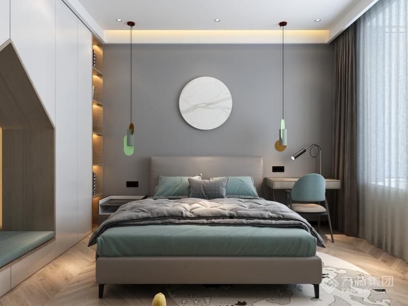 整体风格现代简约,采用大量的木饰面作为装饰,让整体氛围更加隆重,除了常住的三口之家的主卧和次卧另备榻榻米间备用家里老人来帮带娃,榻榻米间也增加了已定的收纳空间