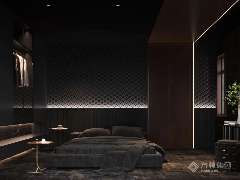 “轻”代表的是一种优雅、低调、舒适;“奢”指的是精致而奢华。轻奢主义,就是一种“没负担、有品质”的生活态度和方式。它不仅代表了一种美好的生活方式,而且代表了人们正在享受的高质量生活细节。它将黑白灰等高级色结合,以深色为基础显示沉稳大气,卧室的浅色调让人的视觉感官通过幽暗深沉空间后豁然开朗。通过一些精致的软装元素来凸显质感,同时也浓缩着意想不到的功能与细节,从而彰显了一种高品质的生活方式。