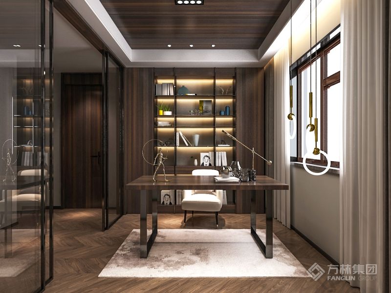 灰与白的交融,在灯光的映射之下,又将光明点缀于暗色之间,使静谧之感悄然而生。