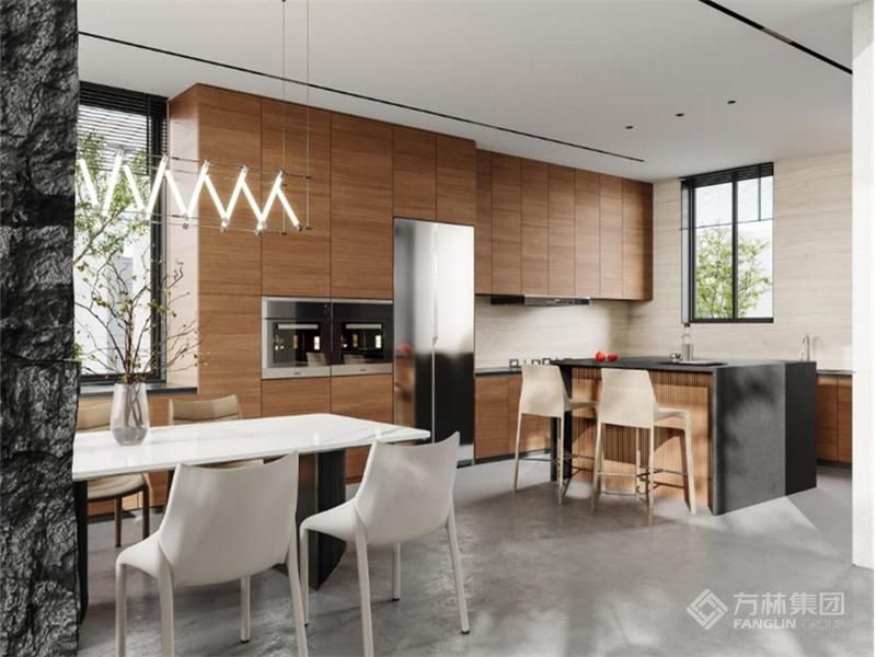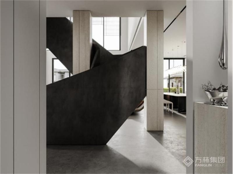 整体空间采用浅色调打底,深色点缀给与一丝神秘感。 几何状的楼梯造型,强调结构形式的简约性,萦绕出整洁现代空间感。红色的浓艳,黑色的沉稳,当红与黑色相遇,高贵霸气碰上了神秘优雅,将碰撞美学达到极致,整体高级且热烈,营造出气质非凡的居住空间。"