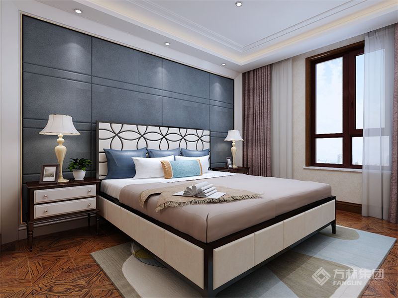 老人房对于父母房而言,我们更加注重的是生活品质感及舒适感,结合硬装的背景墙,打造雅致舒适的卧室空间,在饰品及装饰画的选择,用现在手法的表达,呼应主题与硬装元素。