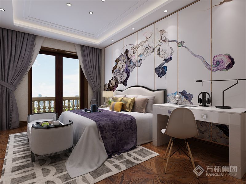 • 老人房对于父母房而言,我们更加注重的是生活品质感及舒适感,结合硬装的背景墙,打造雅致舒适的卧室空间,在饰品及装饰画的选择,用现在手法的表达,呼应主题与硬装元素。